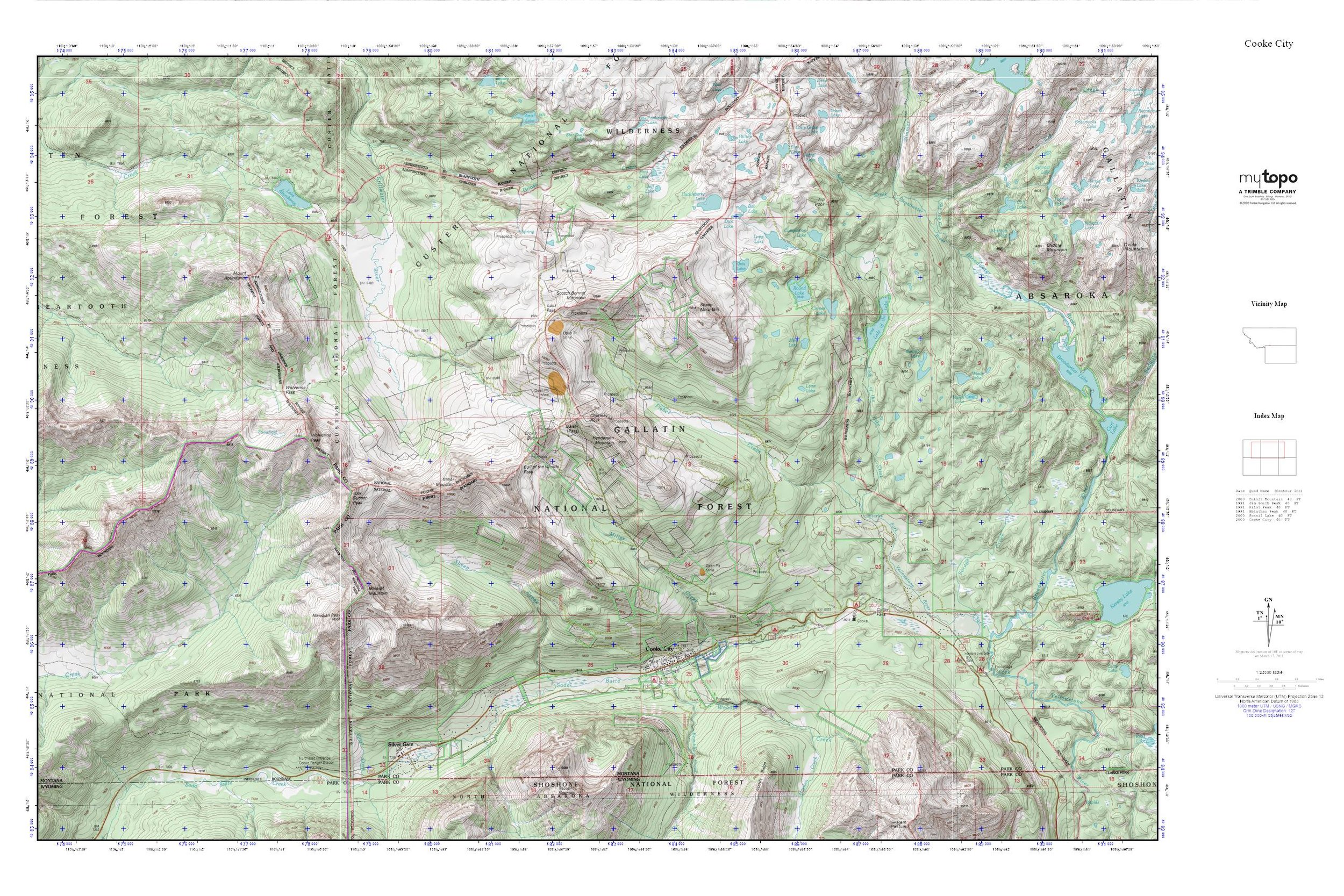Cooke City and Gallatin National Forest map (MyTopo)